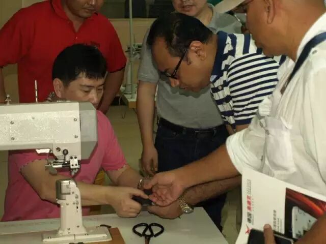 飞越科技总经理肖先生示范针车展示给孟加拉采购团观赏