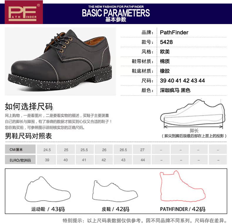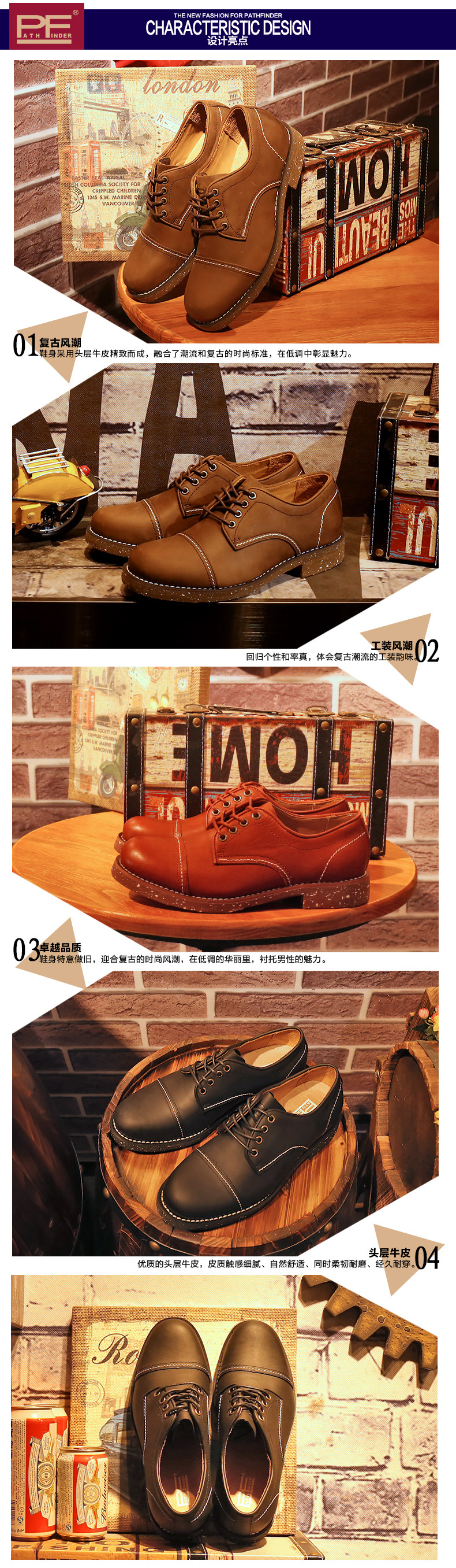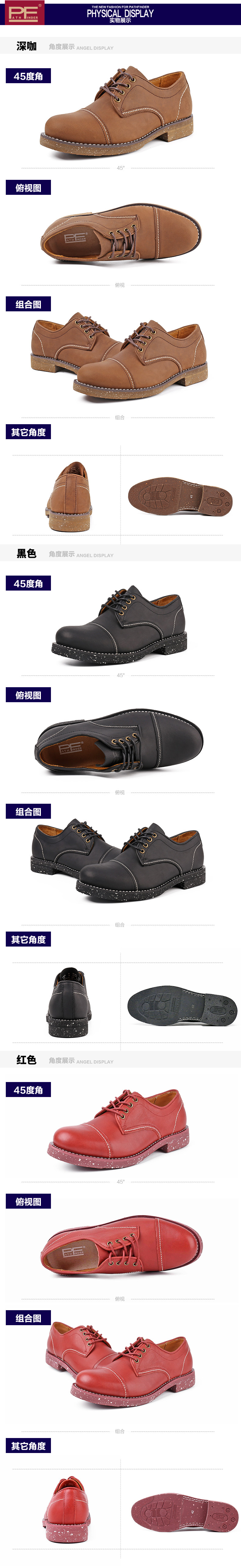 patnfinder春季透气樵夫鞋工装鞋男款真皮复古潮流商务休闲鞋